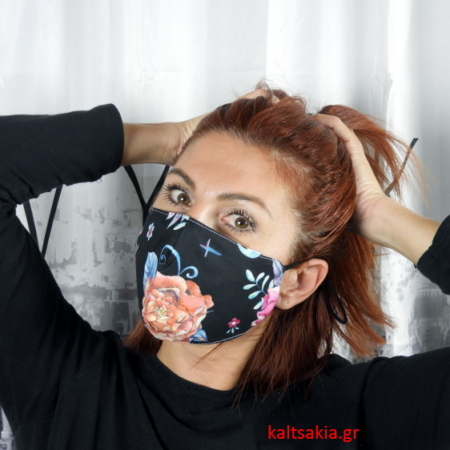 • Υφασμάτινες Μάσκες Προστασίας Ενήλικων μαυρο λουλούδι